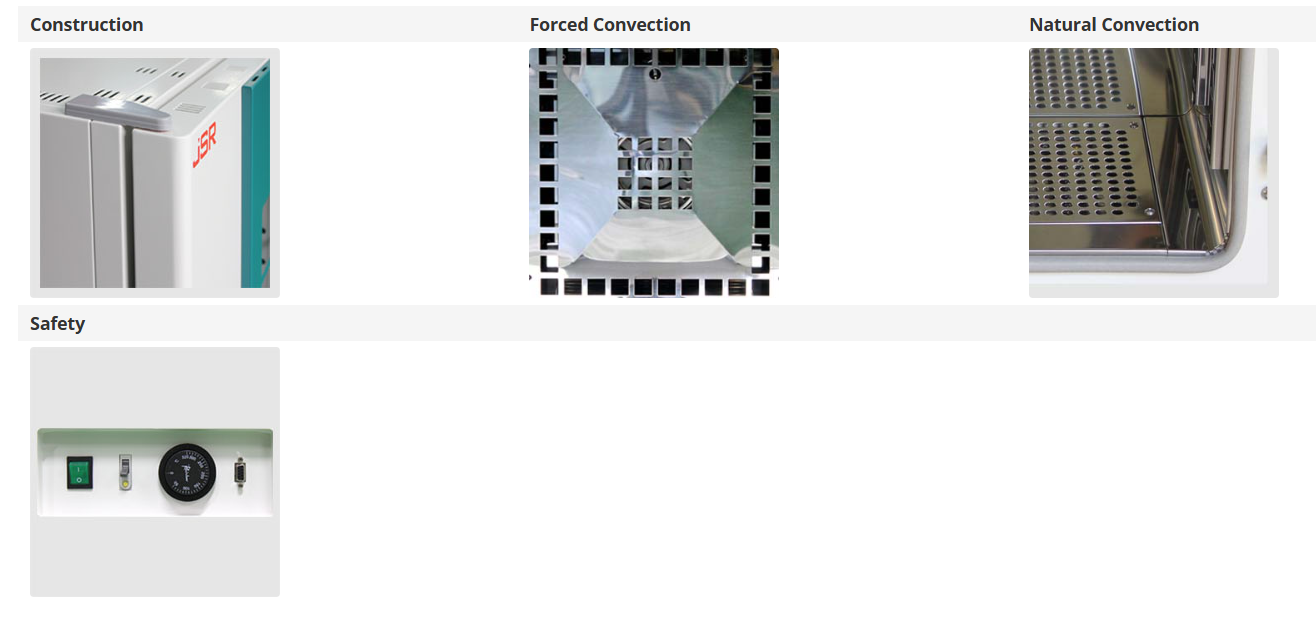 Oven, Forced or Natural (Gravity) Convection, Temperature Range ambient +10 °C to +250 °C, Chamber Volume 30, 50 liters.