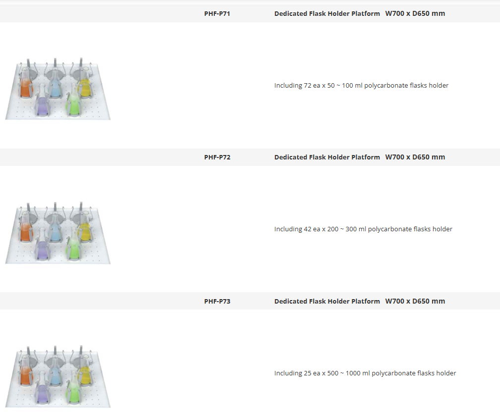 | Four independently controlled shaking platform in a temperature controlled chamber enables large volume of culture under same condition for time saving and consistent production result.