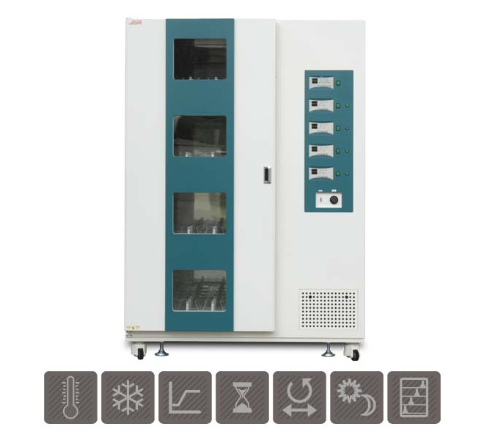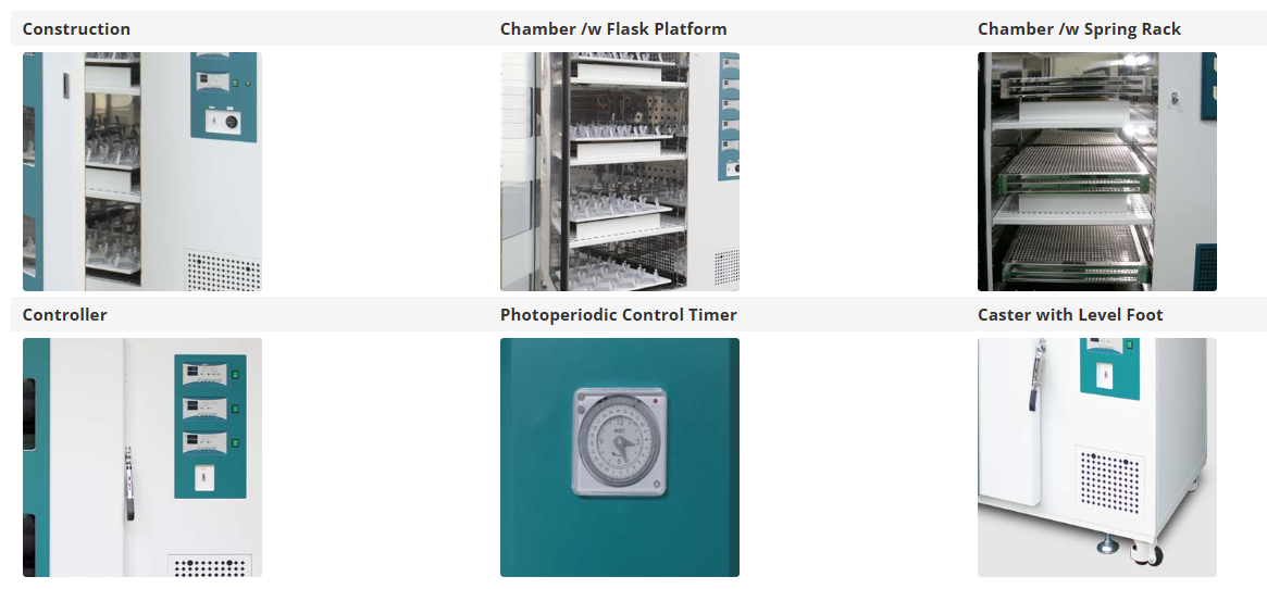 Each shaking platform can be operated independently under different speed and time Forced circulation for excellent thermal uniformity within ±0.5°C Separate heating and cooling compartment prevents contamination and maintenance free Cooling system with hermetically sealed compressor Durable shaking mechanism with powerful AC motor supports orbital or reciprocal shaking motion Programmable Lighting System with 24 hour timer for photosynthetic culture