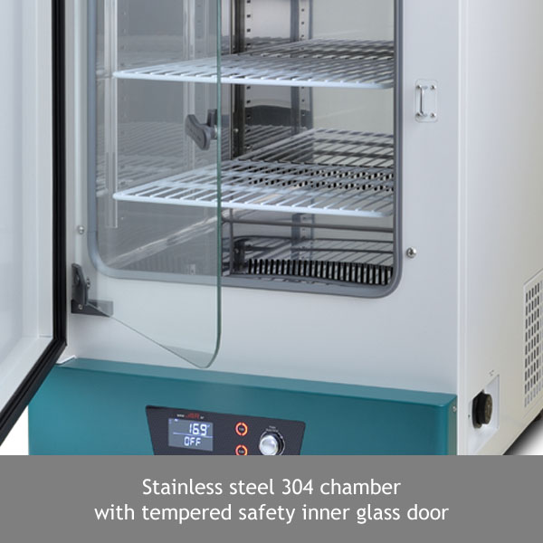 • Corrosion resistant Stainless Steel 304 chamber with seamless round cornered edge allows easy cleaning and prevent leakage • Tempered safety inner glass door for easy observation of samples